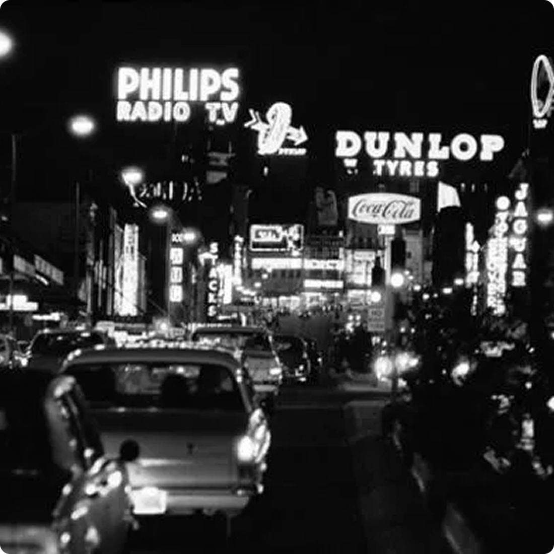 Amongst the bright lights of the 1970’s shone the famous Kings Cross Coca‑Cola sign.