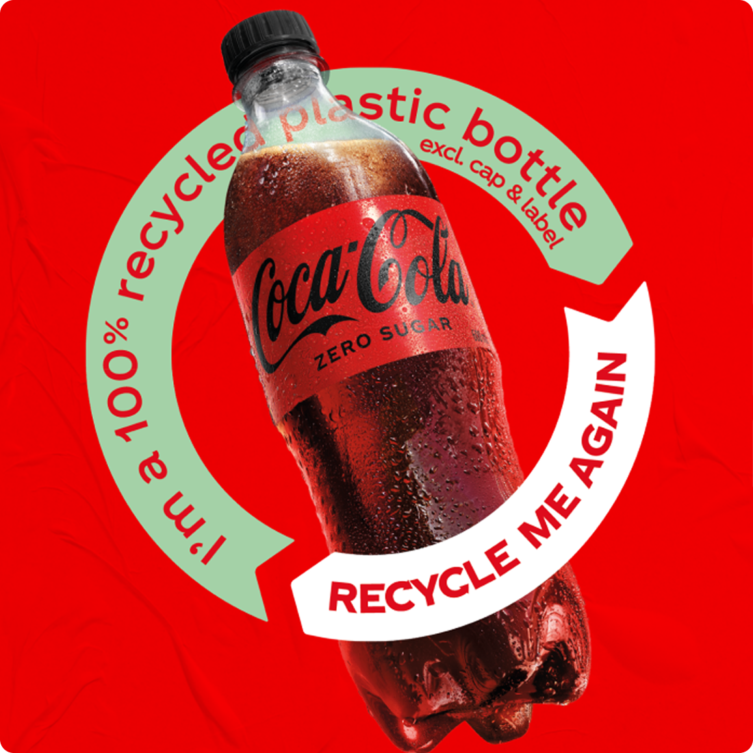 All Coca‑Cola bottles under 1 litre transition to 100% recycled plastics (excluding caps and label).