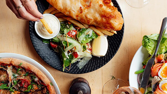 Burgers, pizzas and pasta with a view
