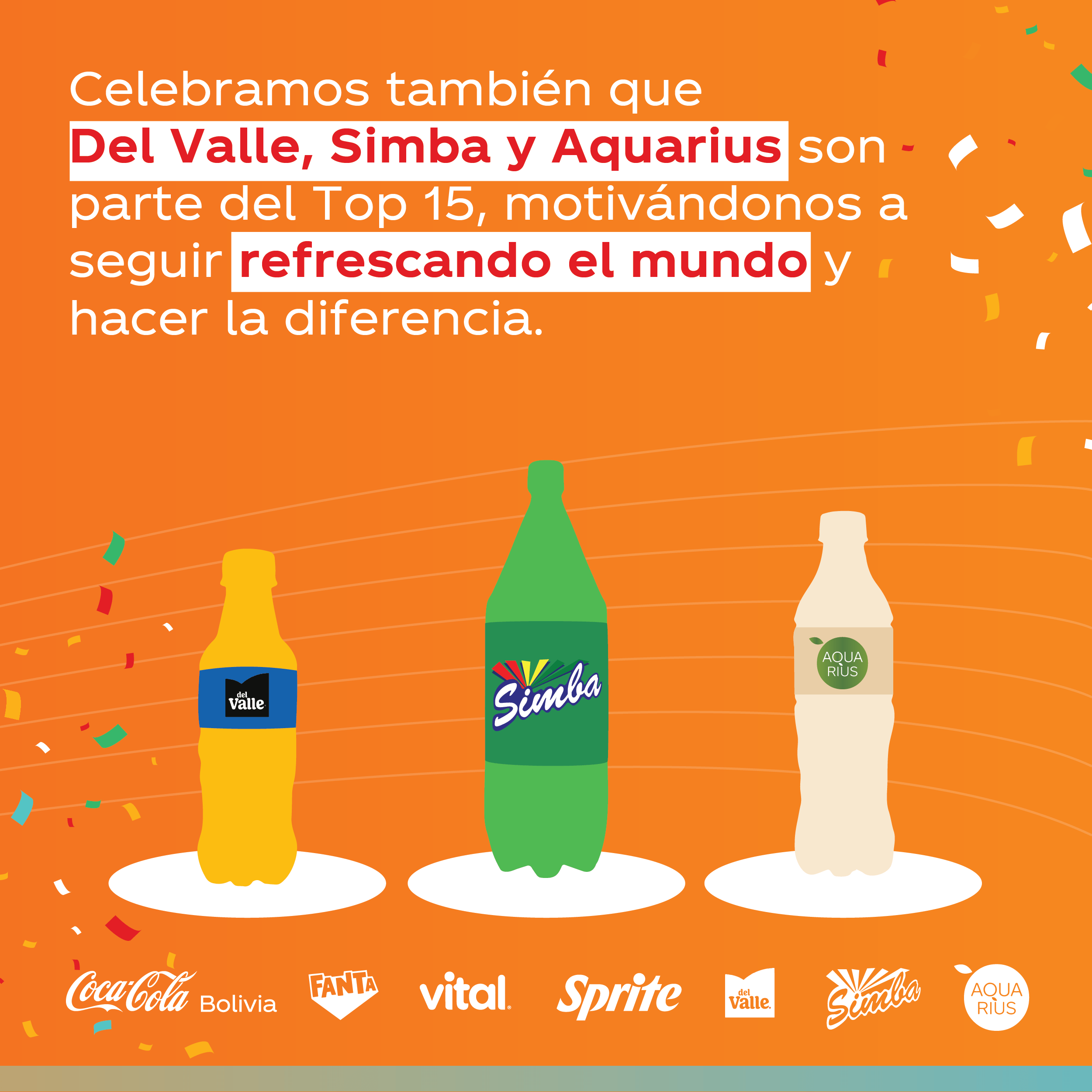 “Es valioso destacar que la marca Coca‑Cola tiene una larga y vibrante historia, así como una fuerte conexión con los consumidores, formando parte de sus vidas durante más de 81 años. Por su parte, Fanta es reconocida por añadir color y alegría a la vida nuestros consumidores. Ambas marcas son parte fundamental de la mesa de las familias bolivianas, orgullosamente presentes en nuestros momentos más especiales”, agrega Calderón.