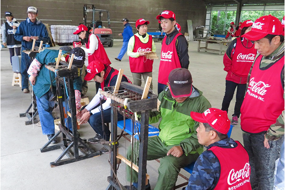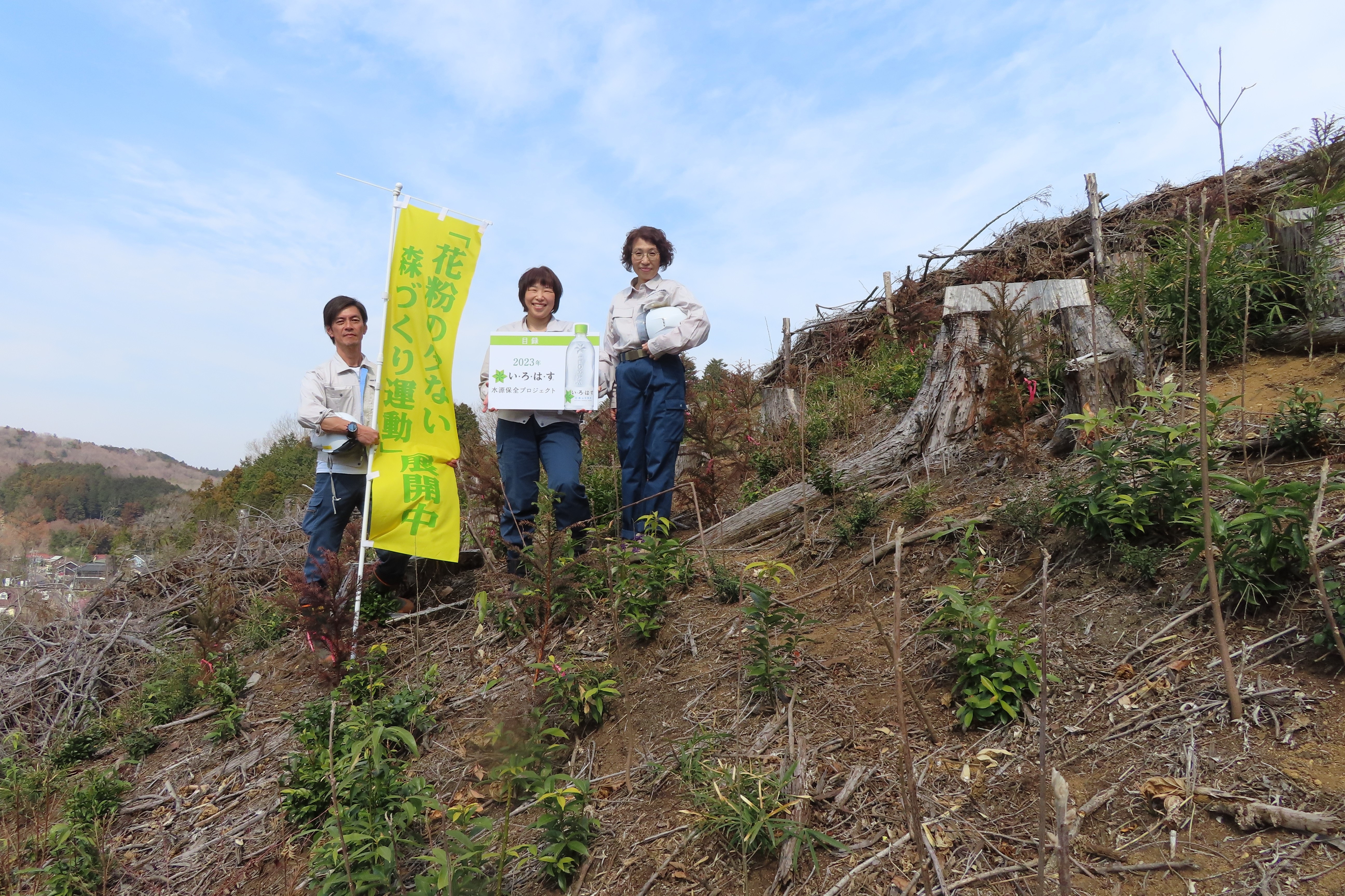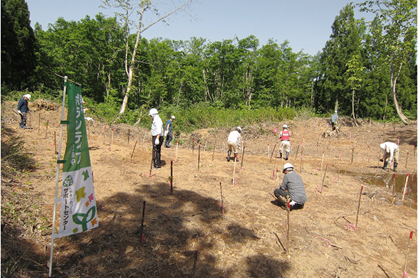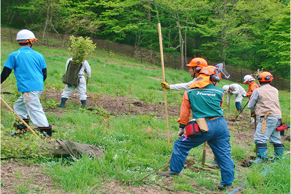 森に学ぼう「うるおいの森づくり」親子自然体験学習会に携わり、蔵王工場の水源地にあたる蔵王地域において、伐採跡地に2017年と2018年は各0.50ha、2019年に0.20ha計2,400本の落葉広葉樹を植林し、下刈等の保育事業も併せて実施しました。また、2017~2020年度の計4年間、「い・ろ・は・す水源保全プロジェクト」に参加し、水源域への植林と下刈、除伐、間伐を実施しました。