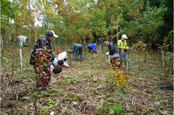 足羽川や九頭竜川の水源地域に当たる坂井市丸岡町や池田町、大野市等で森林ボランティアによる広葉樹の植樹や森林の整備を実施。