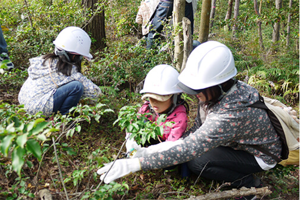・下草刈、肥料入れ、枝打ち、樹木札の取り付け、補植等。