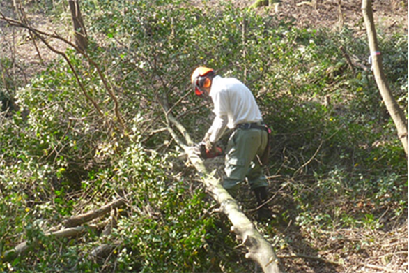 厚木市内の民有林において、針葉樹の間伐・枝打・間伐材搬出を実施しています。また、広葉樹林においては受光伐を実施して、樹木の若返りを図り、森林の持つ多面的機能が十分発揮できるよう活動しています。
