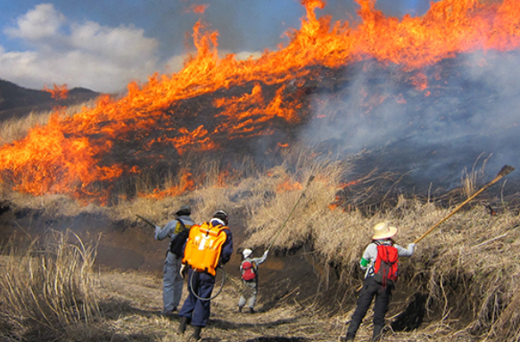 2020年の野焼き支援ボランティア活動は、各方面からの協力により延べ2200名を超える活動になりました。2020年度はコロナの影響で森づくり活動が実施できませんでしたが、野焼き支援活動は感染防止対策を講じてほぼ例年通り行う事ができました。また、初心者研修会や刈り払い機安全講習会、リーダー育成研修会などの各種研修会も行います。