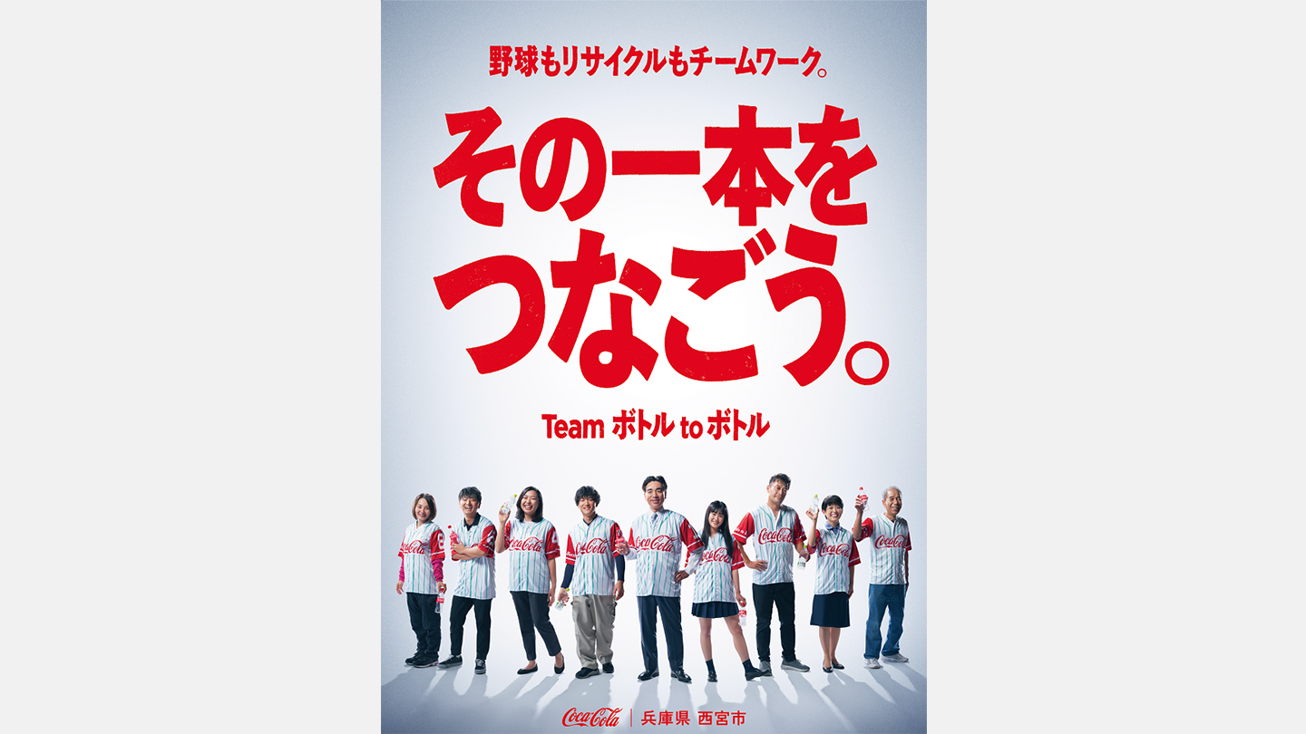熱闘甲子園の期間に合わせて「ボトルtoボトル」オリジナルポスターを西宮市内で掲出しました。ポスターには西宮市長や西宮市民の方々、職員の方達などが参加しました。リサイクルは野球と同じように、様々なメンバーのチームワークが大切です。