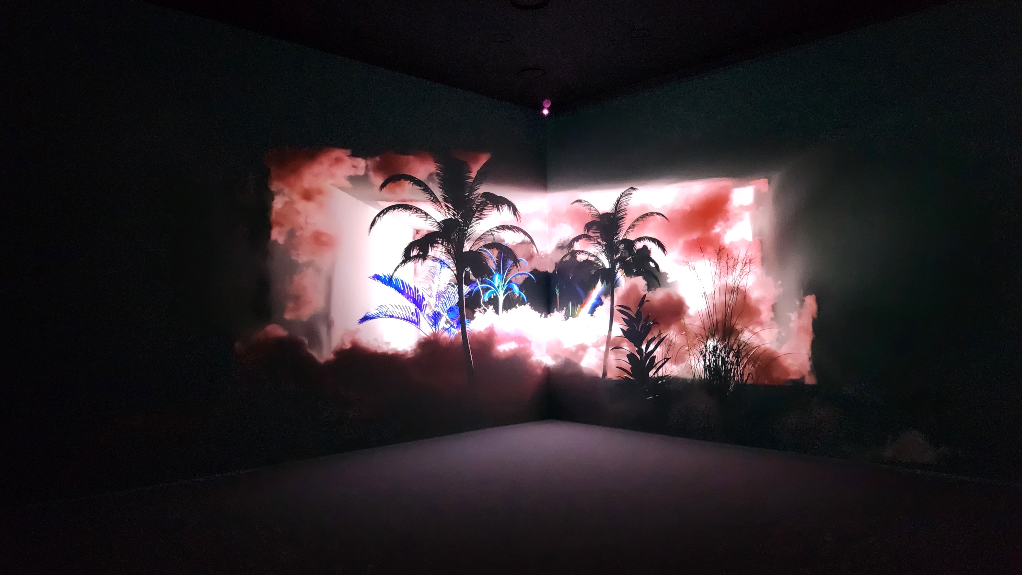핑크빛 구름을 우르릉 떨리게 하는 천둥, 야자나무 사이에서 번쩍이는 번개를 바라보면 저절로 넋을 잃게 된다. 이렇게 가까이에서 천둥과 번개를 감상할 기회가 다시없는 만큼, 이 공간에 더욱 몰입하게 될 것이다. 천둥과 번개가 이렇게 아름다울 줄이야! 오늘밤 꿈 속에서 천둥과 번개를 만난다면 무서워하는 대신 아름답다며 감탄하게 될 것 같다.