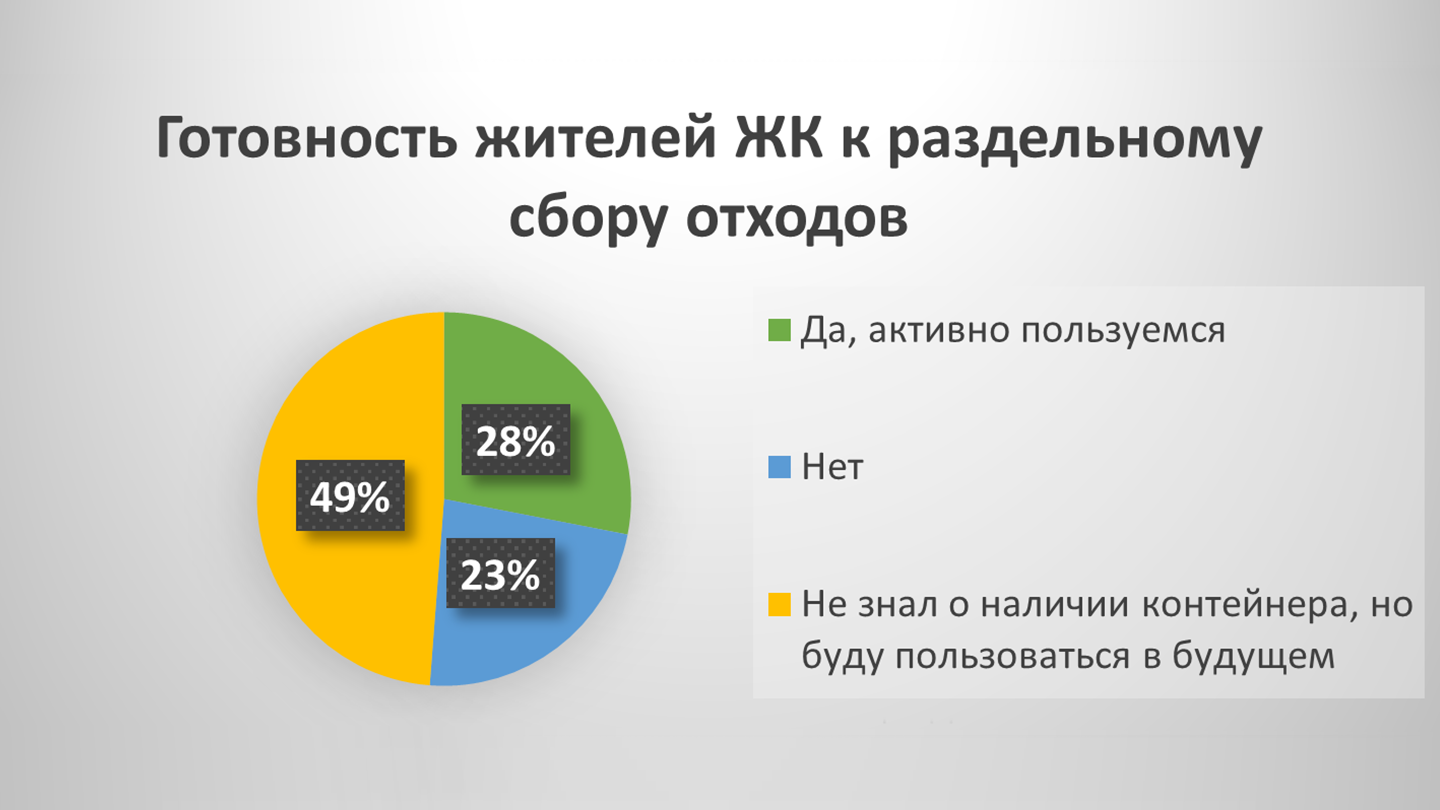 Исходя из полученных результатов опроса, можно заметить, что осведомление местных жителей играет ключевую роль в развитии системы раздельного сбора отходов.