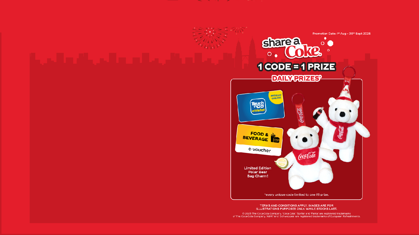 Spend RM20 on participating Coke Products (in super/hypermarkets) or Buy 2 Coke with Meals Combos (in cinema/F&B outlets) - Submit Your Receipt